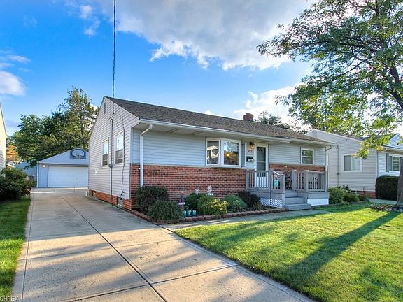 Three bedroom three full bath Willowick ranch in move-in condition offering many updates completed over the past few years. Current owners since 1987. Updated eat-in kitchen features Corian counter tops and porcelain tile flooring. Formal dining room. Spacious master bedroom with a full bathroom addition overlooking a fenced in back yard. Updated full finished recreation room in the lower level featuring a full sized window and porcelain tiles, full bathroom and large laundry room. All appliances included (washer, dryer, refrigerator, microwave, stove and dishwasher.) Pull down stairs for extra storage in the attic. Vinyl sided exterior with front porch and a covered composite deck in the backyard. Two and a half car detached garage with extra room for more storage. HMS Home Warranty offered for one year. Must See!