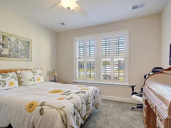 This Beechwood floorplan offers 2 bedrooms and 2 full baths with extended family room. The large kitchen is the heartbeat in this home with beautiful granite counters, double oven, electric range, soft close cabinets, pull out drawers and large stainless farm sink. Laninate Plank floors in the main living area with carpeted bedrooms. Master suite has tray detailed ceiling and the ensuite offers seperate vanities & porcelain tile. Seller has upgraded lighting and ceiling fans along with plantation shutters throughout this home. Surround sound, screened in porch out back and tankless hot water heater complete this fine home