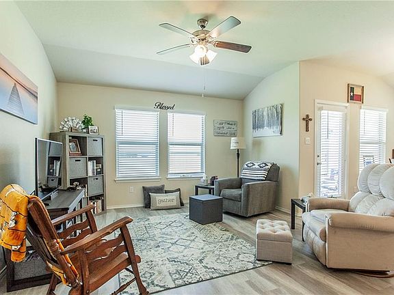 Pictures speak a thousand words......this spotless home won't last long!! Plank flooring expands through the entry, kitchen, living area and baths. Raised ceilings and window filled rooms flood every room with rays of light. The kitchen, eating area and living are open and offer an island with an eating bar. The owners suite is isolated and offers a large soaking tub, separate shower dual vanity and walk-in closet. The covered patio overlooks the privacy fenced backyard. Full automatic sprinkler and pre-wired for a security system.