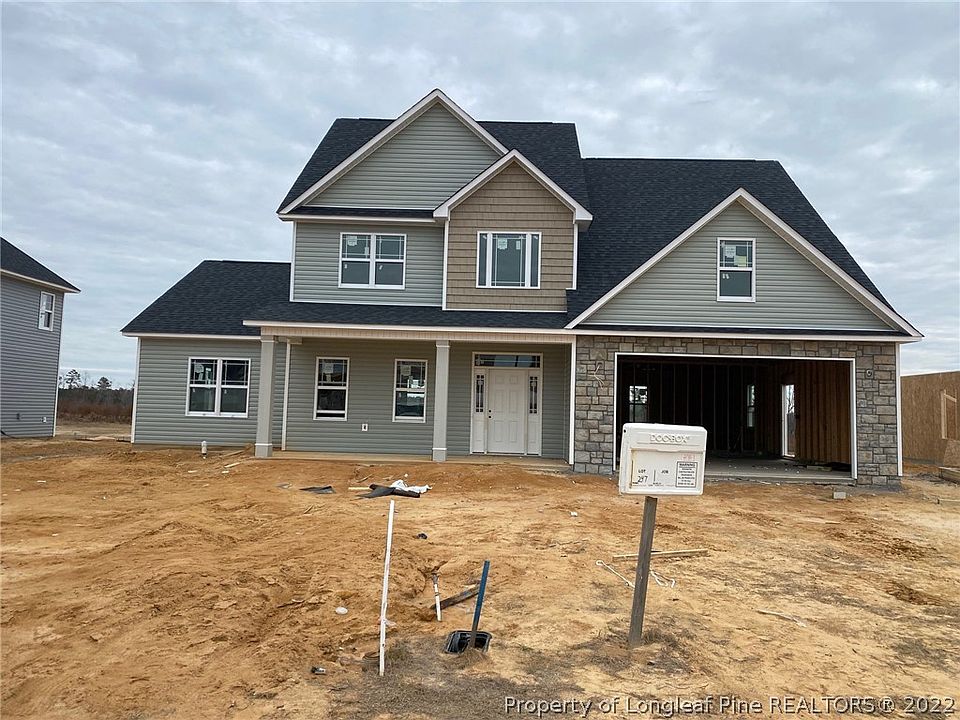 Georgetown Estates-Stone & Vinyl 2 Story with 5 Bedrooms, 3.5 Bath, Covered Front Porch, 2 Story Foyer, Formal Dining Room, Kitchen with Dining Area, Pantry & Bar Seating, Great Room , Master Downstairs with Dual Walk in Closets, Dual Vanity, Separate Shower, 4 Guest Bedrooms Up with 2 Full Bath, also Large Bonus Room. Jack Britt Schools. "Built Strong by Armstrong"