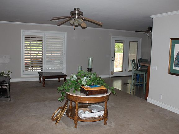 This is one of the nicest town homes in the addition. The home features custom cabinets, an eat-around bar, new appliances, a wonderful covered patio with roll-down full screens, and a large two-car garage with an opener. Inside you have two spacious bedrooms, two full baths, a safe room, and a large family room that opens to the kitchen. The HOA maintains the front yard. The backyard is a beautiful patio area with a brick wall and a covered patio that can be screened in with roll-down screens.