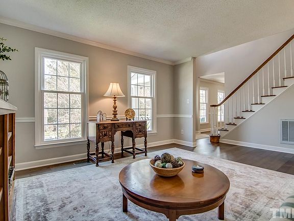 Delightful 2-story home on a quiet street in popular Buckwater Creek at Fieldstone. Move-in ready! Wow! Int & ext paint, beautiful engineered hardwoods, carpet, SS gas range, DW & microwave all in 2019. Windows 2018-19, Gas furnace/AC down 2018, Heat Pump up 2011. Arch shingle roof 2013. Granite counters in kitchen, brushed nickel hardware, ceramic tiled shower, garden tub, WIC. Inviting front porch, large back deck, fenced yard. Great location 12-15 min from Duke. Walk to the Eno via neighborhood trail!