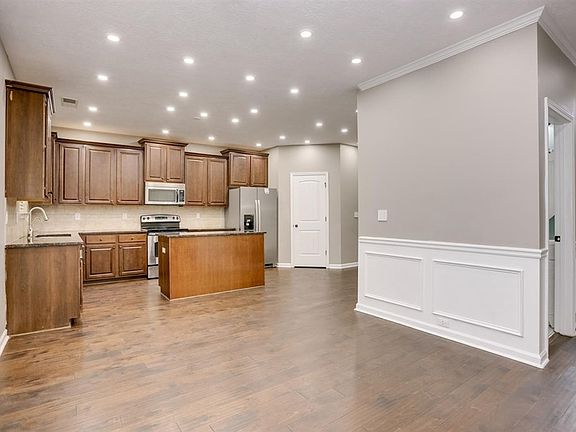 The Abbey plan featuring 9ft. smooth ceilings,updated lighting system LTV hardwood flooring throughout home. Arched room openings on main level. Gourmet kitchen features granite counters, 42 inch cherry stained cabinets, center island, large pantry & GE Hotpoint appliance package including refrigerator. Sunken great room with wood-burning stone fireplace. Formal dining room with coffered ceiling. Enclosed sun room with Ceramic Tile Floors overlooking fenced backyard. Bronze lighting and hardware throughout. Large owner suite features garden tub, separate shower, Ceramic Tile Floors his/her sinks & walk-in closet in bath. Two-story foyer with hardwood floor. All bedrooms and laundry up. Neighborhood Pool. No pets minimum 650 Credit score preferred.