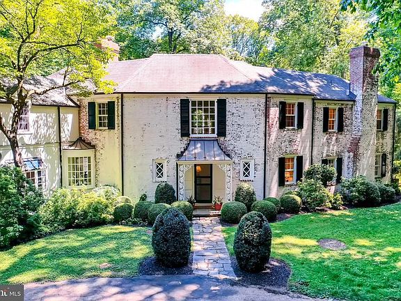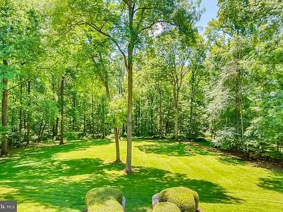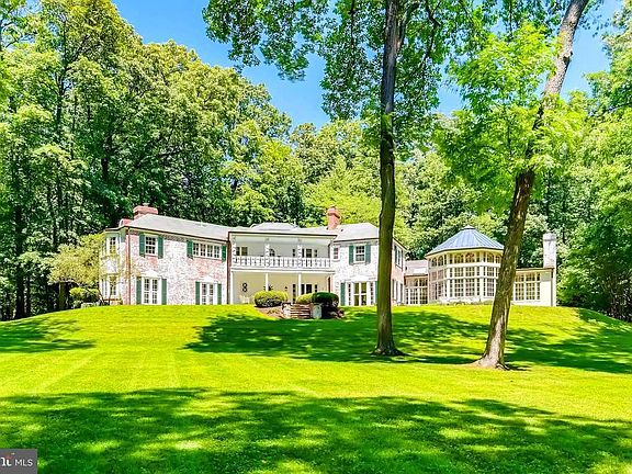 Elegant light-filled colonial situated on nearly eight private acres backs to lush woodlands in conservation with extraordinary views. Beautiful estate property with fine finishes and stylish contemporary elements offers views from every window and features a handsome library and stunning formal living and dining rooms with high ceilings, hardwood floors, and wood burning fireplaces - all connecting through French doors to gracious covered rear bluestone terrace - perfect for alfresco dining. Impressive conservatory with towering ceiling adjacent to great room with fireplace is wide-open to a grand kitchen with luxe appliances capturing a boho-vibe style with sunshine yellow Vulcan 6-burner gas range and casual elements such as open shelving, large island, and impressive butcher-block counters. Main level also features two half-baths, laundry and mud room, butler's pantry, home office, and retro phone booth. Second level offers large primary bedroom suite wing opening to remarkable balcony with majestic vista, four additional bedrooms and adjacent baths, unique art or yoga studio with wet bar and wall of built ins. Partially finished basement features rooms for recreation and fitness, and a multitude of storage space. Attached two-car garage and separate detached garage. Impressive, landscaped grounds include border gardens, specimen trees and shrubs, mature boxwood hedges, stone sitting walls bordering native gardens, and a touch-stone staircase leading to magnificent south-facing level lawn. A picturesque setting in a renowned scenic valley neighborhood. Just minutes to schools, shopping, I-695, and the best of metro Baltimore and the vibrant Inner Harbor.