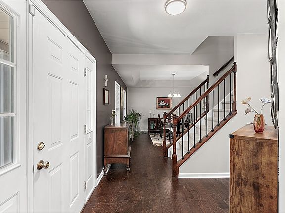 This must-see home in the Hampton School District is an exceptional find. Tucked away on a quiet street, this 4-bedroom, 2.5-bath home offers lots of room to grow. The spacious kitchen features a lovely quartz island, stainless steel appliances, and opens to a cozy family room. Sliding glass doors lead to a private patio and flat backyard with a tranquil wooded backdrop, ideal for play and entertaining. The lot also goes back into the woods as well. The main level includes 9-ft ceilings, open floor plan and a separate living room perfect for an office or entertaining, laundry, and an oversized 2-car garage. Upstairs, the expansive primary suite is a peaceful retreat with a walk-in closet and private bathroom. You will love the bedroom sizes. The huge unfinished basement offers endless potential with a bathroom rough in and tons of storage, 8.5-ft ceilings, a partially finished movie room and 2 other very nice spaces that can be finished as well. Enjoy the welcoming front porch as well.