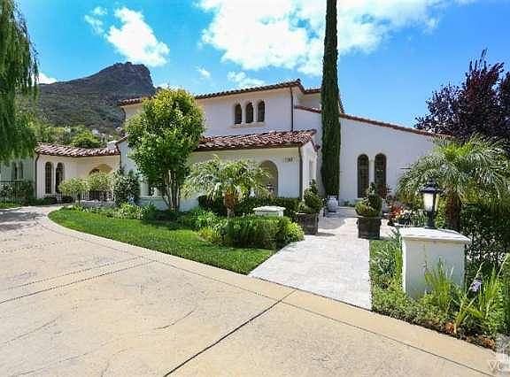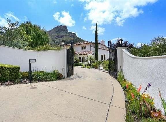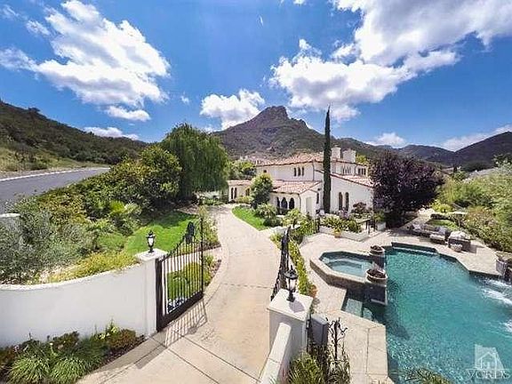 Prominently located beneath the Santa Monica Mountains & behind the guard gates of Sherwood Country Club, this Mediterranean villa forms an oasis of relaxation & enjoyment. An additional private gate embraces the property grounds, including an expansive pool & Jacuzzi with fire bowls, water features & lounge area, Sport Court, built-in BBQ & outdoor dining terrace. The two-story entry foyer guides to the spacious formal living room featuring hardwood floors, fireplace, high ceilings & exposed wood beam detailing. The superior kitchen is top of the line'' in every respect, offering granite counters, center island with barstool seating, Wolf range, stainless steel appliances & opens to the family room for seamless living. The airy master bedroom boasts a fireplace, seating area, balcony & spectacular mountain, valley & clubhouse views from every window. This exceptional estate leaves nothing to be desired, with breathtaking outlooks that take in the beautiful natural surroundings