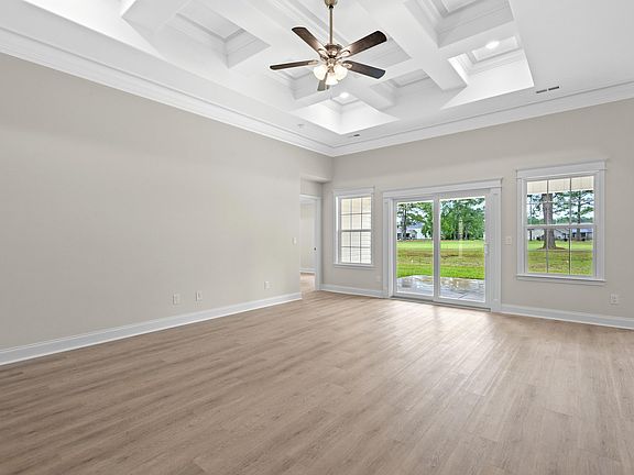 Welcome to 3013 Fiddler Court, a stunning 3-bedroom, 2-bathroom home located in the serene Woodland Valley golf community! Built by a local custom home builder, this property boasts custom upgrades throughout, adding to its charm and functionality. Step inside through the inviting front porch into a spacious foyer that flows seamlessly into the open-concept great room, which features an elegant custom coffered beam ceiling, adding a touch of sophistication and enhancing the bright, airy atmosphere. Adjacent to the great room is the well-appointed custom kitchen, complete with solid surface countertops, stainless steel appliances, and a custom island with counter-height seating—perfect for entertaining. The dining room is ideal for hosting gatherings. The master suite offers a private retreat, boasting a custom tray ceiling, a large walk-in closet with custom built-in compartments for extra storage, and an ensuite bath with double sinks, a luxurious custom quartz vanity, and a separate shower. The two additional bedrooms share a second full bath and are located conveniently near the main living areas. Enjoy outdoor living on the covered patio, which provides a spectacular golf course view the perfect spot to relax or entertain, and a beautifully landscaped backyard. Additional highlights include luxury vinyl plank (LVP) flooring throughout, a large laundry room, and a spacious 2-car garage. This home is nestled near the Diamond Back Golf Course, offering both luxury and convenience. Don't miss your chance on this move-in ready exceptional property. Schedule your showing today!
