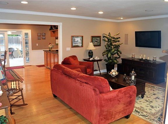 Nicely upgraded single level home located on a cul de sac street with hardwood flooring, high base boards, recessed lighting features, dual pane windows, raised panel doors, french doors, ceiling fans through out, 5.1 built in speakers, crown moulding, built in BBQ, newer stainless steel convection oven, french doors, 6 year old air conditioning unit and furnace and ducting, fully enclosed patio room not added in square footage, direct garage access, atrium garden area off the living room, all this on a large interior lot with a long driveway for parking.