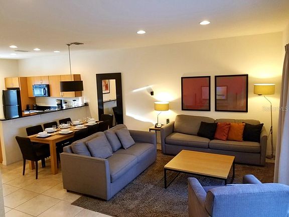 Great opportunity for new owner . Welcome to Encantada, one of the premier resort town-home communities zoned also for short term rental. This luxury Fully Furnished 3 bed 2.5 bath town-home is income producing property currently rented as a vacations rental but can be OWNER OCCUPIED, SHORT TERM OR LONG TERM RENTAl. PLUS THE COMMUNITY OFFERS LOTS OF AMENITIES- Clubhouse, 2 heated pools, 2 heated spas, restaurant, fitness center, game room, fishing pier , 24 hour concierge AND MORE! Located very close to world Disney and Universal theme parks.