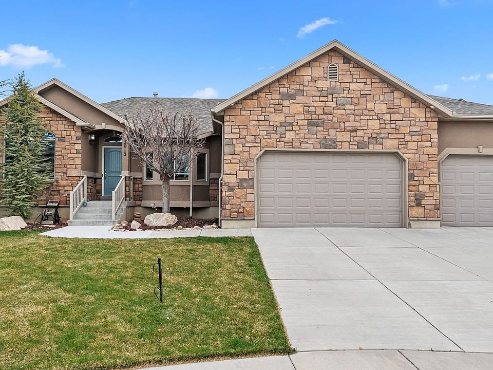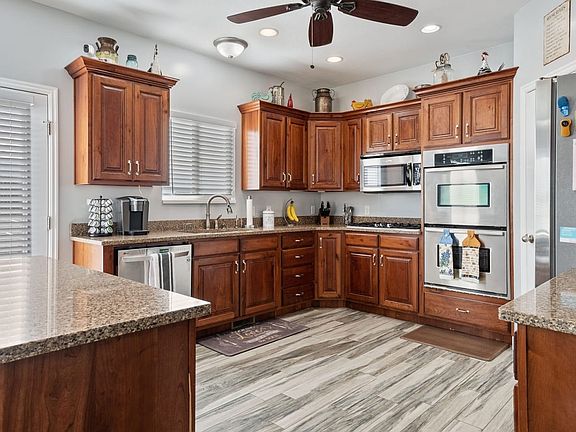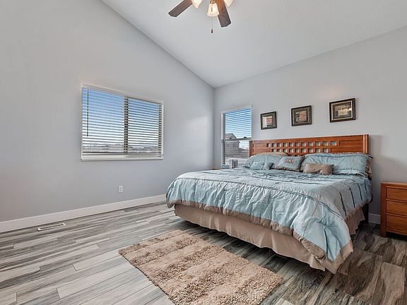 Rambler located on quiet cul de sac with 5 BED/2.75 baths, 9 FT Ceilings Lg open kitchen/family room area. Gas fireplace, Quartz countertops, stainless steel appliances, Double wall mount ovens. Separate shower/jetted tub combo in master bath, cultured marble showers in 2 bathrooms. Fully finished basement. Central vacuum on both levels. Solar Power in 2016* Beautiful tile floors upstairs. New carpet throughout. Wired for RV and hot tub, mature fruit trees.