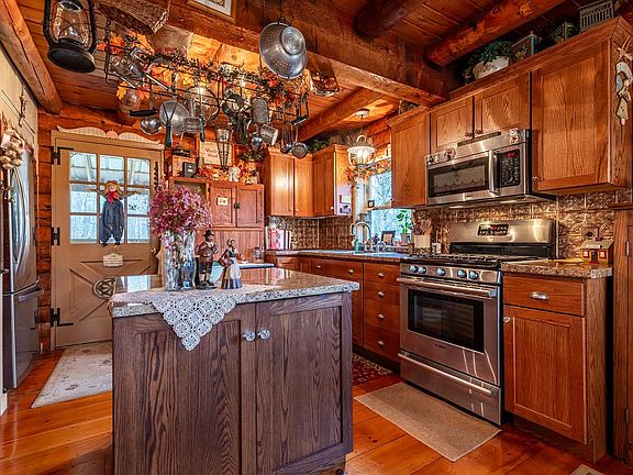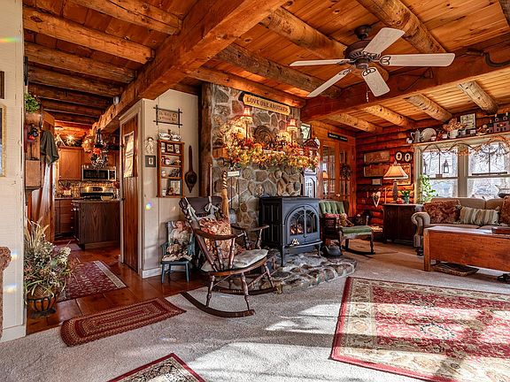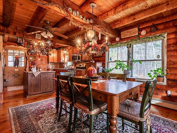 Charming log home with lots of character on 10 acres with winter views. This home offers eat in kitchen/ dining room, open and bright living room and 3 bedrooms on a second floor. Entertain on the back porch overlooking babbling brook and a pond or enjoy gathering around the stove on cold winter nights. This property has been meticulously cared for and updated. Kitchen has granite counters. Close to town with all the joys of country living...the best of both worlds! Enjoy the outdoor activities on your own land. Convenient location between Manchester and Rutland. All measurements are approximate.