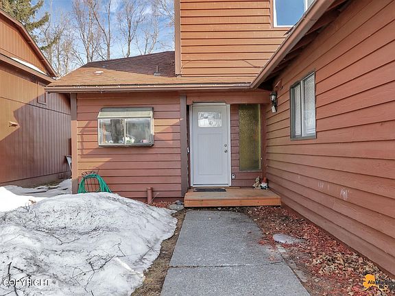 Townhouse-style condo close to airport, walking trails, Earthquake Park & Lake Hood. Super cute unit with new windows, new furnace, fresh paint, updating handrailing, flooring, lighting & much more. You'll love the entry door! All appliances stay, incl. W&D. Fireplace in LR. Bedrooms upper level. Main level has half bath. Assn. allows lattice fencing w/approval. Buyer to verify all info