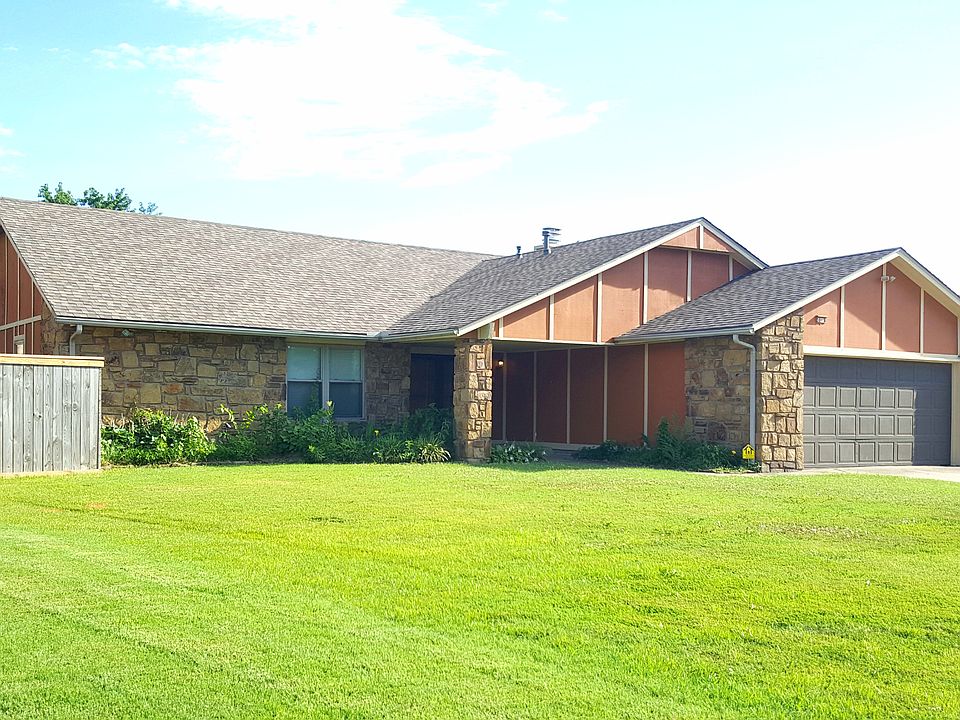 Awesome home with motivated sellers who will work with the buyers agent at 3%. This home has 3 Bedrooms/2 Bathrooms/2 Car Garage. Vaulted ceiling in the living room. 32'x 10' shop w lofts. Granite counters with a sunken sink. Huge lower deck w/ strung lighting . Contoured high deck w/ 22' above ground pool- 'wedding cake' style steps included. 12' outdoor table w/ benches on deck, large bar area, and outdoor kitchen area ready for your grill. Security System. Sprinkler System. 3 year old roof. In Broken Arrow- 3 minutes from 169. Quiet neighborhood next to culdesac. Three houses down from large fielded property with horses, llamas, etc. (Horses enjoy the carrots.) Lovely home.