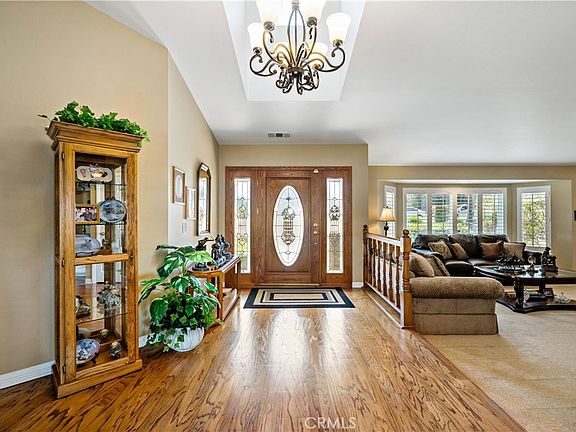 Stunning Single-Story Meadowview Cul-De-Sac Home with Panoramic Views in Temecula. Discover this hidden gem in Temecula’s coveted Meadowview community, where low taxes and an HOA fee of just $354/quarterly provide incredible value. Nestled on a spacious cul-de-sac lot, this beautifully updated 4-bedroom, 2 full bathrooms and 2 half bathrooms home offers luxurious single-story living in an equestrian-friendly neighborhood, just minutes from wineries, the Promenade Mall, and Old Town Temecula. Step inside to find an inviting layout adorned with real hardwood floors, custom cabinetry, and remodeled bathrooms. The chef's kitchen is a showstopper, boasting soft-close cabinets, high-end finishes, a built-in double refrigerator, and a double built in mini fridge—perfect for entertaining. Cozy up by one of two fireplaces, two electric heaters enjoy your favorite tunes with the built-in sound system, or breeze through chores with the convenience of a central vacuum system. The primary suite is a serene retreat, featuring a spa-like bathroom with modern upgrades and a custom-built walk-in closet. The dream garage setup is equally impressive, with a bathroom, finished flooring, and a versatile bonus room ideal for work, hobbies, or hosting guests. Outdoor living takes center stage with a covered patio offering unobstructed, panoramic views—the perfect spot to relax and take in Temecula’s natural beauty. Energy efficiency is unmatched, thanks to 78 solar panels makes it energy free, new double-paned windows, and water bills averaging under $100/month. As part of the Meadowview HOA, you’ll enjoy access to community amenities like pools, tennis courts, pickleball courts, and equestrian trails. Plus, the seller is including a home warranty for added peace of mind. Don’t let this rare opportunity pass you by—schedule your private showing today!
