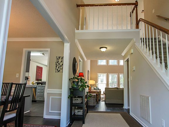 Beautifully updated home in well kept neighborhood!Grand 2-Story entry,formal DR with crown molding and chair rails,Eat-in kitchen with quartz,stainless appliances,new cabinetry,custom backsplash,farmhouse sink,gas range,LR with vaulted ceilings,bamboo flooring,new carpet,new paint,large windows for natural lighting,double sided fireplace,cozy den,nice sized utility/mud room.Master suite with garden tub,dual vanities,walk-in closet,2 additional bedrooms.Incredible backyard with HUGE deck and flat lawn!