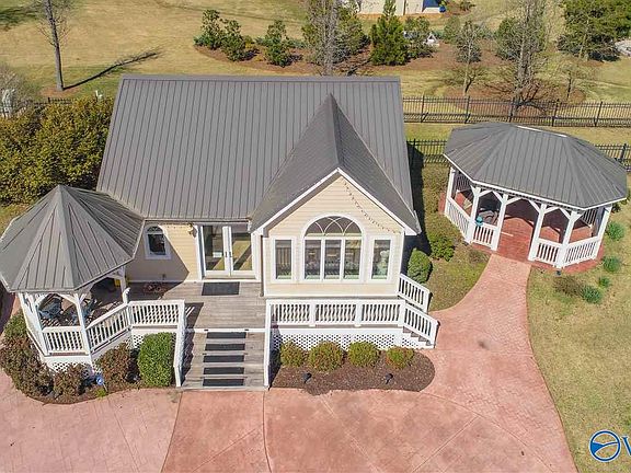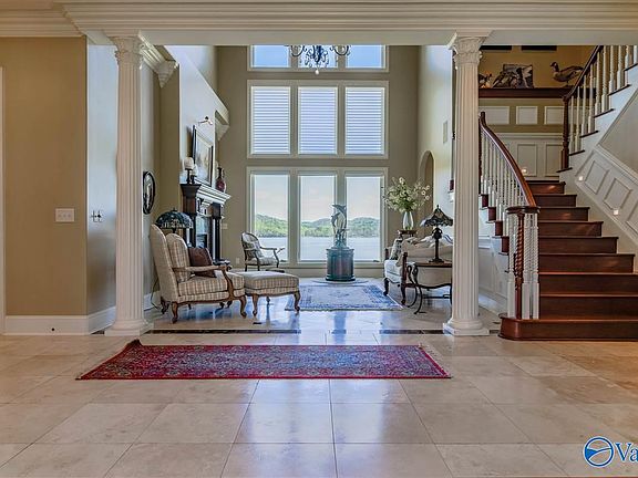 Rare luxury home on 7.67 acres at Buck Island with 1000+ feet of premiere main channel waterfront shoreline. This property offers 7,000 square feet of living space and an 840 square foot guest house. Your family and loved ones will enjoy the spacious outdoor living spaces, perfect for family gatherings! Features include an over-sized kitchen with island and granite counter tops, custom plantation shutters, gorgeous master suite, a media room, two hobby rooms, indoor workshop, plenty of storage, in-ground pool, two detached buildings, a shooting range plus STUNNING views of Lake Guntersville! Come and take a look at this beauty....Don't miss out!