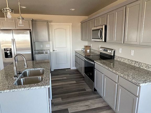 4 BR, 3Bath, 3 car garage with a fully finished walk out basement. Laundry, the master bedroom with bath and walk in closet, a second bedroom and bath are on the first floor with the kitchen, dining and living rooms. Granite counters throughout, walk in shower in the master and 2 full baths with tubs are available for the other 3 bedrooms. Huge basement family room with built in for a wet bar. Front porch, balcony and patio are all included, as well. This home will never have houses built behind it, as it sits on open space.