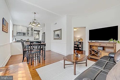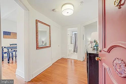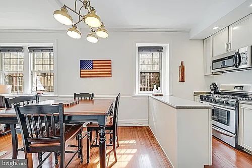 Bright and updated corner one-bedroom condo with a private patio in Georgetown! This unit offers a separate entrance from the shared courtyard. Step into a welcoming foyer with a coat closet. The open living area features four sunny windows and a dining space. The renovated kitchen includes stainless steel appliances, freshly painted cabinets, new lighting, and plenty of counter space. The full bathroom has a marble-tiled tub. The cozy bedroom offers a ceiling fan, a walk-in closet, and patio access. Enjoy the covered patio with bistro lights and planters for privacy. Freshly painted with original hardwood floors, central AC, pet-friendly, and includes additional storage and bike storage. Close to parks, shops, dining, and just 1 mile from Dupont Metro (Red Line).