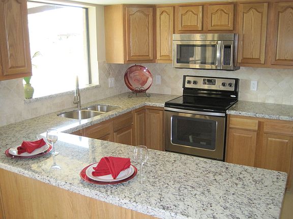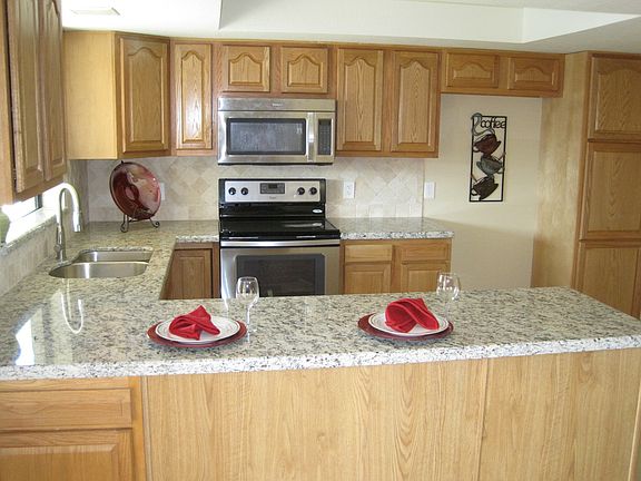 JUST REDUCED $5,000!! This exceptional Ranch Style Home won't last long!! Completely Remodeled! Granite throughout, kitchen, bathrooms & hallway nook! Custom kitchen, raised panel cabinets with brand new Whirlpool stainless steel appliances, deep undermount stainless steel sinks, & travertine backsplash. New carpet in bedrooms & living room; 18" porcelain tile flooring throughout. Master walk-in closet with custom built-in shelving. Master bath boasts 24" upgraded porcelain tile on the floor and in the shower with deco tile band and inset.(see pictures) Side entry garage, skylight, oversized laundry room with built-in pantry shelves, outdoor storage room/shop, 10' x 20' back patio, This red brick, block built home is packed with energy savings! BRAND NEW energy efficient dual pained windows, front entry door, upgraded interior and closet doors. All this space with NO HOA; directly across from the City of Mesa Los Alamos Park & Greenbelt.10' RV gate and parking! (New sprinklers in the front yard will green up the lawn by COE.)