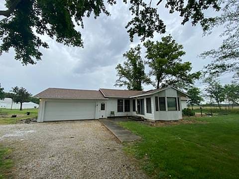 NEW PRICE!!!!!Make Bid. Open Concept 2 Bedroom, 2.5 Bathroom Ranch located between Olney & Noble on the north side of IL 250. House sits approximately on 1 acre and is easilly accessible due to its u-shaped driveway allowing access form IL 250 and side county road. Rooms include an open concept kitchen, open concept dining room, and open concept family room combined to form a great room area perfect for entertaining. A front sunroom is streetside and leads into the great room area. Home has a spacious utility room area, a master bedroom with ensuite bathroom, plus another bedroom and bathroom. Also on-site is an attached 2 car garage and detached 1 car garage plus workshop. Nice site in scenic rural farming area in close proximity to Olney and Noble. Now Available For Showing.