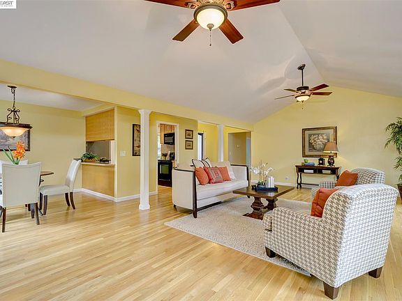 Charming Single Story at end of cul de sac in Pleasanton Meadows! Hardwood floors, new wall-to-wall carpet, vaulted ceilings, ceiling fans, updated kitchen and bathrooms, new garage door. Close to award winning schools, BART, shopping, dining, and community pool.