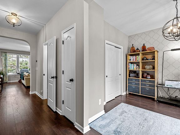 GORGEOUS updated, multilevel, townhome with engineered hardwoods throughout (except staircases & tile in full baths). Stunning designer paint finishes in several rooms. Open floor plan with kitchen & dining area overlooking the family with wall of windows, built ins & gas fireplace. Stainless appliances replaced in 2021 (except fridge). Gas range. Numerous lights were replaced. Main floor flex room used as an office. Powder room vanity & toilet replaced in 2021. Other commodes replaced in 2021 as well. Huge 2nd floor primary bedroom with vaulted ceiling on second floor, luxury primary bath with garden tub, walk in shower, dual vanities with tons of counter & storage space, separate commode room and walk in closet. Secondary bedrooms are large as well. Balcony off one of bedrooms. Laundry room has storage/organization shelving. Third floor bonus room. Lots of natural light throughout home. Epoxy floor in garage. Large patio out back to relax and enjoy. HVAC 2022. Roof 2022.