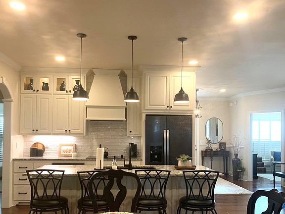 Custom built 3 bedroom 2.5 bath home w/enclosed patio & office/formal dining. Open concept, split bedroom floorplan with wood/tile floors & 2 fireplaces. The kitchen features custom cabinets w/built in display case, drawer microwave, granite, large pantry, tile backsplash & under cabinet lighting. Living room is open to the kitchen w/wood floors, stone fireplace with linear burner. Large master bedroom w/ensuite featuring double vanity & vessel sinks, storage tower and walk in closet w/shoe racks & top hanger rack pulls down for convenience. The enclosed patio features slate flooring & gas log FP. Plantation blinds, floored attic space, epoxy floor in garage & more! Won't last long!