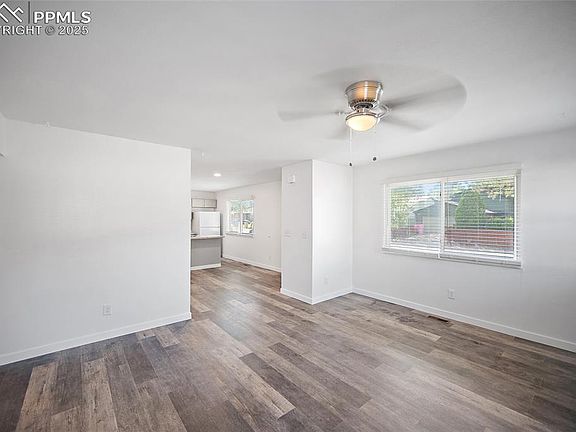 Welcome to this beautifully updated Stucco ranch-style home featuring new luxury vinyl plank flooring throughout. Thoughtfully remodeled, this home offers a spacious and fully fenced backyard—perfect for relaxing, entertaining, or letting pets roam freely. Inside, you’ll find an open floor plan that seamlessly connects the kitchen, dining area, and large living room with a cozy wood-burning fireplace. The kitchen boasts brand new cabinets, counter tops, sink and breakfast bar, newer appliances, and great flow for everyday living and gatherings. Down the hall are two generously sized bedrooms and a large bathroom with double sinks and was complete remodel. You'll also appreciate the abundance of storage space and a dedicated laundry room for added convenience. Just to name a few of the upgrades: New lighting and 3 ceiling fans, new interior paint, all new trim, newer windows, blinds and, large pantry and dedicated laundry room and more. Located near the Deerfield Hills Community Center and Park, enjoy nearby amenities including a splash pad, basketball and volleyball courts, covered picnic areas, climbing structures, a community garden, and expansive green fields. With easy access to parks, playgrounds, walking trails, shopping, and dining—and just a short commute to Schriever AFB, Peterson SFB, and Fort Carson—this home offers both comfort and convenience in a welcoming neighborhood.