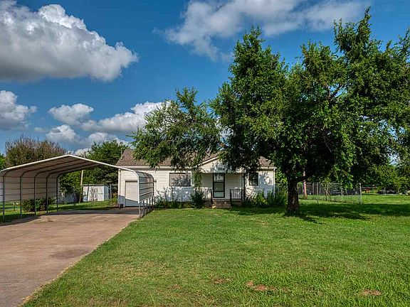 Enjoy Beautiful Sunset views from the front porch on over half an acre outside of town yet just 5 minutes from main street. Wood floors and pocket doors add character to this well kept cottage. Ample attic space and Built ins in the hall for additional storage. The spacious eat-in kitchen with easy access to the large Fenced backyard is perfect for entertaining. You will find a Pecan tree and several producing fruit trees on the property; Cherry, Apple, Peach and Plum. The 2 large storage sheds are included and there is a storm shelter. Newer HVAC, Water Heater and Double Pane Windows that tilt in for easy cleaning. Refrigerator, Washer and Dryer stay not warranted. Located just 24 minutes from Stillwater and 20 minutes from Perkins. This convenient cottage is a must see!