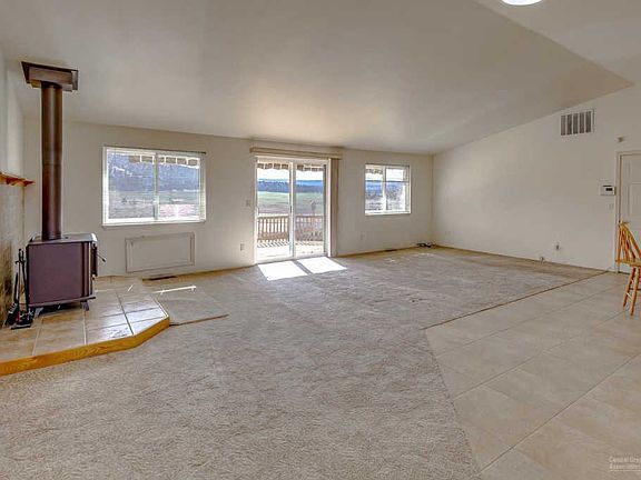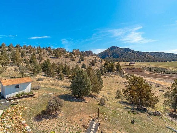 Situated high on the hill looking out to Barnes Butte & majestic rock pillars, this single level home is a rare find. Great room layout with a wall of windows that showcase the Central Or sunrise & sunsets. Open kitchen w/island & eating bar, plenty of cabinets, tile floors & all appliances included. Wide living space w/corner wood burning fireplace for efficient winter heat & cozy mornings. Master Suite offers an easterly view & the bath fts tile floors, walk in Jacuzzi shower w/seating & body sprays. Adtn 2 bedrooms & guest bath w/tub/shower. Living space opens to full length deck overlooking the valley. Spend your evenings soaking in the hot tub & enjoying the view & pleasing sounds of nature. Retractable Sunsetter awning for year round enjoyment, rain or shine! New vinyl siding, new roof & outfitted w/seller owned Sunlight Solar system for a huge power savings. 2 storage sheds are included. Bring your RV & boat - this property has a covered RV space & boat/toy storage. 1.7 acre lot
