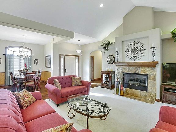 Live like you are on vacation everyday in this move-in ready ranch with panoramic water views from almost every window! This sensational home features new composite roof, 2 new water heater, new furnace, newer air conditioning, radiant heated floors throughout the entire lower level, surround sound, security system, and humidifier! This lovely living room welcomes each guests and features large windows, vaulted ceiling, decorative nooks to display your favorite art piece, gas fireplace with tile surround, and built-in speakers. This open floor plan makes entertaining a breeze and includes two dining areas and a beautiful kitchen with Corian counter tops, island with breakfast bar, under and over cabinet lighting, built-in speakers, new appliances, and walk-in pantry. The laundry room is conveniently located right off the kitchen and features a folding counter, sink, hang rod, and built-in bench with storage space! Spend peaceful nights in the main floor master suite with carpeting, large windows, trayed ceiling with cove lighting and ceiling fan, built-in speakers, gas fireplace with tile surround, and door to the screened-in deck. You will love just hanging out in this gorgeous finished basement complete with radiant heated floors throughout, gas fireplace with blower, built-in speakers for your TV surround, large viewout windows, game area with built-in desk, door to the patio, and wet bar. This stunning home features a radon mitigation system and great storage space! After a hard day enjoy relaxing out on the screened-in deck or covered patio watching the sunset over the lake while looking out at your fenced backyard and private dock! Hurry do not miss this fabulous waterfront home!