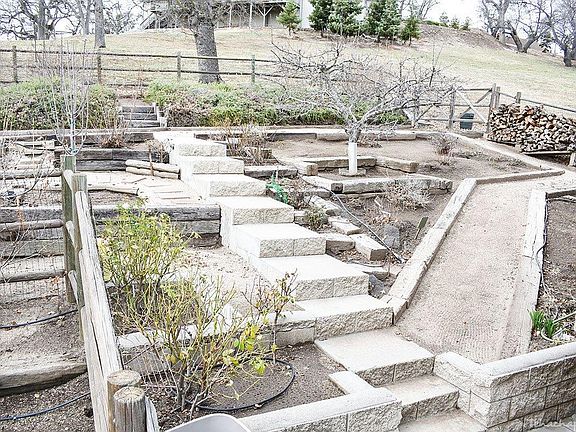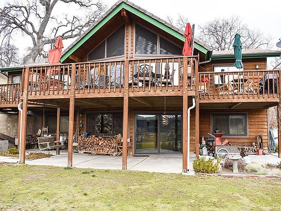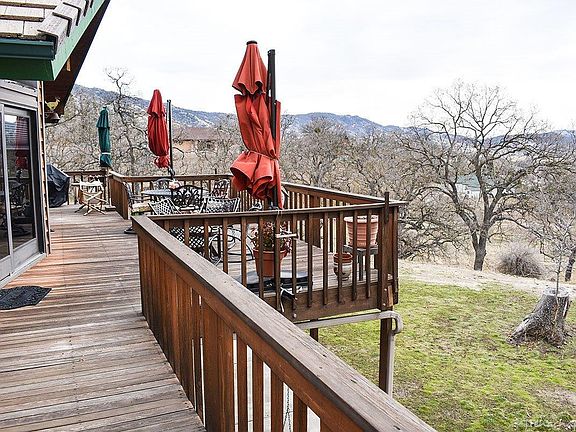 This is a custom built home with outstanding views of the lake and the valley without being high in elevation. The home is a cedar sided home with wood interior ceilings on top floor or main floor. The kitchen was remodeled 2 years ago. Giant oak trees and incredible views of valley and lake. Back garden area with raised veg. area etc. The master suite and one guest room on main level, with giant den and two more bedrooms downstairs. Fireplace in great room and wood burning stove in den downstairs. There is also a two car workshop downstairs that you can access from inside on the home. Giant pantry and wine celler area downstairs