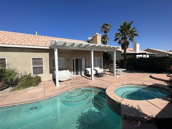 Welcome to your dream home! Nestled in a charming neighborhood, this beautiful property offers the perfect blend of comfort, convenience, and entertainment. With 4 bedrooms, 2 bathrooms, and a range of desirable features, this residence is ideal for families or couples seeking a spacious living space with the flexibility for a home office.One of the highlights of this home is the backyard oasis. Step outside and discover a haven for relaxation and fun. Take a dip in the sparkling pool on hot summer days or soak in the soothing waters of the jacuzzi under the starlit sky. Additionally, the backyard features a delightful fruit tree, providing you with fresh and delicious treats right at your fingertips.The location of this property is truly unbeatable. Situated within walking distance to Sunny Sands Elementary School, James Workman Middle School, and Dennis Keat Soccer Park, this home offers unparalleled convenience for families with school-going children. Downtown Palm Springs is just a short 15-minute drive away. Enjoy a vibrant city atmosphere with a wide array of dining, shopping, and entertainment options. If you're in the mood for a shopping spree, the renowned El Paseo Shopping District is only 20 minutes away, offering a high-end retail experience.One of the standout features of this home is its solar energy system, which is on a lease to own program that can be assumed by the buyer. Don't miss this incredible opportunity to make this house your home.