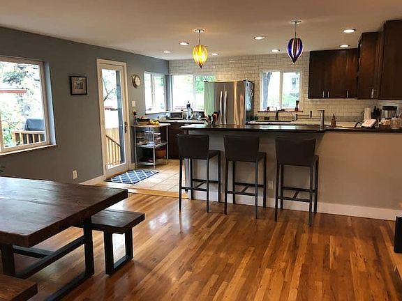 Rented. Potentially available 8/1/2022. Ideally located 5-bedroom, 2-bathroom, single-family home on a beautiful tree-lined street in the Newlands neighborhood, just steps away from North Boulder Park and a short walk to the Ideal shopping center (w/ Whole Foods and other restaurants and shops) and a trailhead for beautiful hiking in the foothills. Pearl Street is also close, pleasant one-mile walk. The house is situated on a quiet street with mature trees and little through-traffic. The lot is large (~6,000 sq. ft). The house itself is over 2,000 sq. ft (main level and finished basement). The house has a deck on the front of the house that looks out on the tree-lined street and North Boulder Park. The backyard is fenced-in and has a patio for outside eating. There is a detached garage with one covered parking spot and ample storage (landlord will keep a small portion of the garage for storage). There is also a concrete pad leading to the garage that could serve as another off-street parking spot, but street parking is always available. As you enter the house from the front, you walk into a large and light (2 skylights) open floor plan consisting of the living room, dining room and kitchen. There are three bedrooms on the main level (see floor plan). Bedrooms 2 and 3 are being used as home offices (9 X 13 feet). There is one bathroom, with a walk-in shower, with a door from the master bedroom and access from the hallway. The lower level is a finished basement that has the same overall square footage at the main level. The lower level has a large tv/rec room (with a free ping pong table), 2 bedrooms, and a full laundry room with a washer and dryer and a lot of storage. The house has a number of other amenities. During the summer, a newly installed swamp cooler keeps the house cool, and in the winter you can settle around the newly installed gas fireplaces in the living room and rec room. Tenants may use the hot tub in the backyard if they are willing to maintain it (fairly easy). The house has solar panels which reduce electricity bills. The house is also located in the desirable Foothills Elementary, Casey Middle School and Boulder High school boundaries. Please note that official records of square footage may not be correct. The total house footprint is ~2,500 sq feet for the main level and lower level. The 1360 sq feet listed on Zillow is likely a reflection of the above-ground square footage only. See Floor Plan included. Some modifications/upgrades have been made, but it provides the main floor arrangement. The minimum lease term is one year. Dogs are negotiable and will require a pet deposit. There is absolutely no smoking on the premises. The detached garage can be used for parking (one spot) and storage. The landlords will continue to use one-half of the garage for storage. Street parking is always available. Tenants are responsible for all utilities. Landlord will pay for lawn mowing and provide a water credit for summer irrigation. There is a super-sweet, strong, and waterproofed skateboard half-pipe in the backyard. Tenants may use at their own risk or use will be prohibited. Renters will be required to buy rental insurance. Only 3 unrelated occupants living on the premises due to Boulder regulations. Long-term license agreement RHL 00995838.