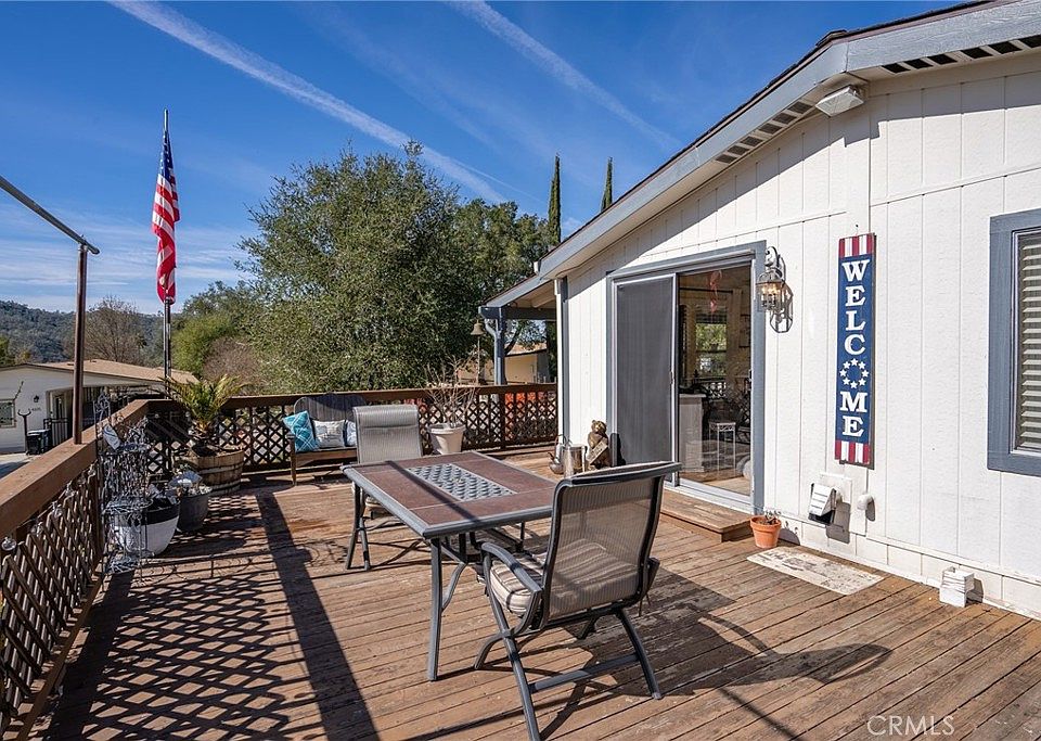 Beautiful renovated home with an open floor plan and stylish finishes, offering 2 bedrooms + a detached office in the gated community of Heritage Ranch at Lake Nacimiento. Affordable living at it's best AND you own the land! Pull up to your deep driveway with plenty of parking and step onto your front deck with plenty of room for your patio furniture to relax and enjoy the beauty of the surrounding hills dotted with oak trees! Step inside onto your gorgeous laminate floors! The open floor plan gives this home such a spacious feel. The bright white cabinets and unique center island give make the kitchen beautiful. There is attractive updated lighting throughout. The hall bath has been renovated with quartz counters and updated lighting and both bedrooms are spacious and your primary bedroom offers your en-suite bathroom and walk in closet. Inside you will also find your laundry room and just outside is your carport, which also makes the perfect patio space! At the back yard find your detached office. The second door leads to a workshop area and in the back yard you will also find your hot tub!!! Enjoy sunset views and lake living! You are just a few minutes away from the boat launch, and the community amenities including swimming pools, tennis courts, pickle-ball, walking trails, parks and security gate. Just outside the gate is a grocery store, gas station, elementary school and a few other shops too! All financing types welcome! Call today!