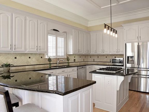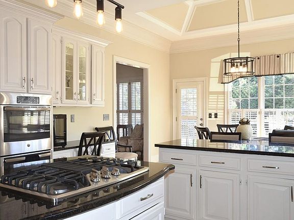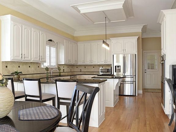 - Kitchen Features: Breakfast Bar, Eat-in Kitchen, View to Family Room, Stone Counters, Kitchen Island, Pantry Walk-In, Breakfast Room, Cabinets White