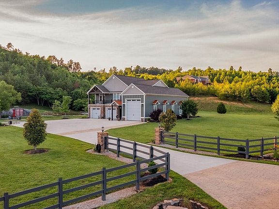 Amazing custom home on just under 10 acres. 2 Car Garage with one having the space for a 4 door truck, and a RV garage that is spacious enough for a 45 Ft Coach and they are all heated and cooled. As you walk up you will see the copper covered front porch. When you enter the front door you are welcomed to a beautiful foyer with wood tile heated floors and staircase. The main level also has a gathering/family room with mini kitchen, built in cabinetry and desk area plus a full bath with a washer/dryer combo. Go up the beautiful staircase to the living area with huge greatroom and kitchen. The stone fireplace is breathtaking. The kitchen has a gas range, Italian tile backsplash, leathered granite counters, pantry, wine cooler, vegetable sink and pot filler. The dining area is open to the kitchen and greatroom. Large master bedroom with tile walk-in shower, double vanity, and walk-in closet. The guest suite has a sitting room and bedroom with the guest bath just outside the bedroom. Outside the home is an outdoor kitchen with power and water. There is a RV hookup in the driveway. The outdoor kitchen is perfect for grilling and entertaining. Outside there is lots of storage for all your equipment with 2 barns, and a car port the 2 barns have power and water. There is a container that is underground and used as a safe area. The pond is mountain spring feed.