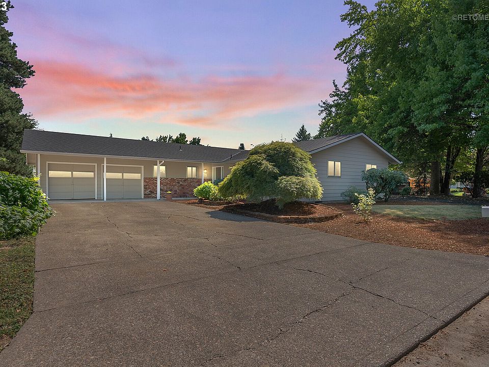Beautiful ranch home nestled in a lovely park like setting. You will be delightfully surprised as you drive up to this home with the wide expansive driveway with mature shrubbery and wonderful RV parking. The charming covered front porch and ornate front door welcome you as you step into the home. Fresh paint, new flooring, white woodwork and new six paneled doors throughout. The warm and inviting living room features a cozy wood burning fireplace, large picture windows and room for your sectional and big screen tv. Cheerful dining room offers a great space for your farm table and hutch with French doors opening up to the sunroom. Enjoy your morning coffee in the sunroom amongst the pretty cactus blooms. Room for your extra fridge & freezer in there too. Remodeled kitchen features all new countertops, appliances, sink, pantry & nice breakfast bar. Open concept family room offers modern ceiling fan and large windows looking out to the backyard. Wonderful master suite with custom tile shower, built in vanity with drawers, large closet and new lighting. Spacious 2nd and 3rd bedrooms with good sized closet space. Bright inside laundry room. (Washer and Dryer can stay!) The Whimsical backyard has pretty blooms, room for your garden beds & plenty of grassy area for the kids to run and play. Great RV parking offers space for your RV and boat. Every room has been touched in this home. New roof and newer interior & exterior paint too! Great neighborhood with pride of ownership. Walking distance to schools, parks & downtown farmers market. You will love the perks of living in a small community with the holiday parade, chalk festival & small botiques & great restaurants. Close to award winning wineries & Hagg lake too. A must see.