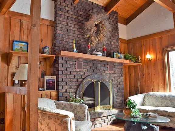 NORTH TWIN CHALET - This two story chalet faces south with 99.93' of sand/gravel frontage on very desirable North Twin Lake, a 2788 acre full recreational, well-known fishery. The interior is warm and inviting with its' tongue and groove paneling, hardwood flooring and beamed cathedral ceilings. Open concept kitchen and living room make for easy living and entertaining with a woodburning fireplace and large windows for natural light. Two main level bedrooms, an upstairs loft/bedroom - perfect for the kids, and a finished lower level which includes another bedroom, full bath with laundry room, family room with fireplace and a workshop complete the home. New furnace & roof this year! This property is on 1.81 acres and you are also 1/13th owner of approx. 30 acres of land across the street which backs up to the Nicolet National Forest - offering thousands of acres of year around recreation from hunting, snowmobiling, ATVing and hiking. This is a home for all seasons so come and enjoy!