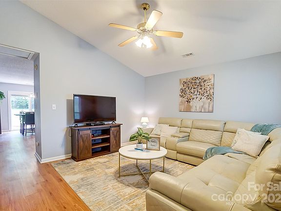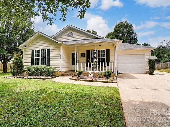 This charming and well-maintained 3 bed/2 bath ranch-style home is nestled in a peaceful neighborhood with quick access to I-485 and the Monroe Expressway. This beautiful residence offers the perfect blend of comfort & convenience without the hustle&bustle of the city but is still close to shops, restaurants, entertainment, etc. As you step inside you will be welcomed by the spacious living room and the hallway leading you to the functional kitchen. The beautiful kitchen features an island w/bar seating, lots of cabinets & matching white appliances. The dining area is connected to the kitchen and offers abundant natural light through the sliding glass door that opens to the pavers patio. The primary bedroom w/ensuite is generously sized and has a walk-in closet, the secondary bedrooms are very spacious. Large mostly level backyard with wooden fence and mature trees for added privacy. The roof and water heater were replaced in 2021, HVAC was replaced in 2019. Don't miss out on this one!