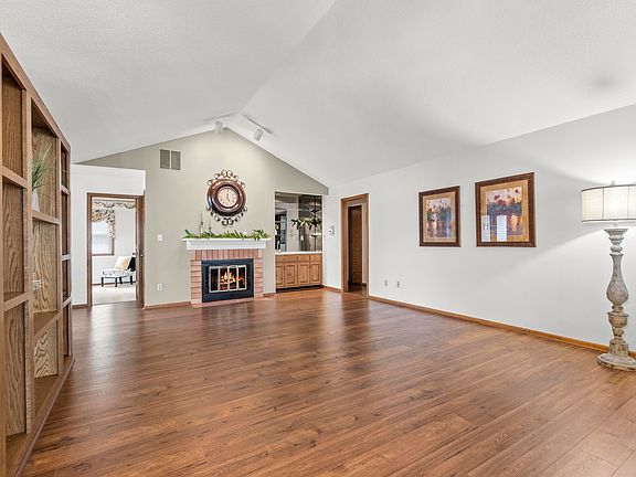 Wonderful Shores of Oak Borough Villa SW on a Pond!! Open Concept, 3 Bdr. 2 bath Home is ready for You! You will be Amazed @ the Open GR w/Cathedral ceilings, wood burning Fireplace with Mantel, Custom Oak built-in Wet bar w/glass shelving, & Oak Entertainment Ctr/Bookcase. This was a former parade home when it were built! Updated Hardwood Flooring in Foyer, GR, Dining, & Bdr 2. Split Bedroom Floor plan w/2 full baths. The kitchen has plenty of Oak Cabinetry, a corner sink & shelf for plants & many updated appliances, including a Bosch Dishwasher, Stainless Steel Whirlpool Refrigerator, Newer Whirlpool Washer and Dryer, Kenmore Microwave, & Frigidaire glass top electric stove. The Lg Master Suite has a circle top window w/built in blinds in the front window. Master bath has dbl sinks, walk-in shower, & walk-in master closet. Don't forget the 3 Season Room overlooking the POND to relax and enjoy the peaceful wildlife! 2 car gar has a bump out w/workbench and built in storage shelving. Floored attic above for extra storage. The low HOA dues are $409 Quarterly. These include the use of the clubhouse, pool, tennis courts, mowing, fertilization, & snow removal on main roads. The Pond is stocked and ready to fish! The Clubhouse is conveniently located across the street, one door down for your enjoyment!