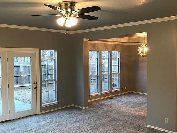 Jenks Schools. All new carpet, new tile upstairs, completely updated paint and several fixtures. 3 Bedroom, 2.5 bathroom. Bonus space could be a fourth bedroom (no closet). Master bedroom with 2 walk-in closets and 2 vanities with separate water closet. All bedrooms upstairs along with laundry HOOK-UP (Tenant supplies washer & dryer). Main floor large living space with fireplace, dining room with french doors to the backyard. Kitchen also has access to the backyard and the double garage. NO Pets. Tenant responsible for all utilities and trash, light lawn care included in rent