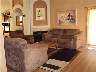 Price Just Dropped. This fine and well-priced home is NOT a short sale, so NO waiting to close. This 3 bedrooms and an office/den/4th bedroom has vaulted ceiling, custom paint,gas fireplace, kitchen island, traventine backsplash in kitchen with matching window seats and laminate flooring throughout. A must see is the custom Mosaic tile in the master bath. Landscaped backyard with a covered patio. Shows like a model home.