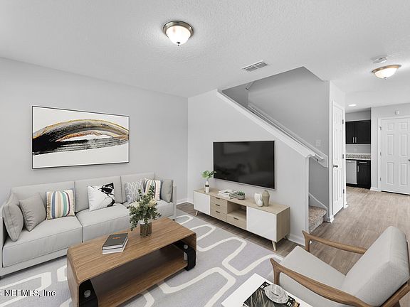 Welcome to your dream home! This immaculate, two-story home, built in 2023, offers three bedrooms, 2.5 baths, and a spacious layout perfect for comfortable living and entertaining. It also features vinyl flooring throughout (except the staircase), stainless steel appliances, and modern finishes. It is conveniently located on the north side of Jacksonville, with easy access to Interstate 95 North and less than a thirty-minute commute to three military bases: Kingsbay, Mayport, and NAS Jax. Don't wait to build! This move-in-ready home is waiting for you! Furnished photos are virtually staged.