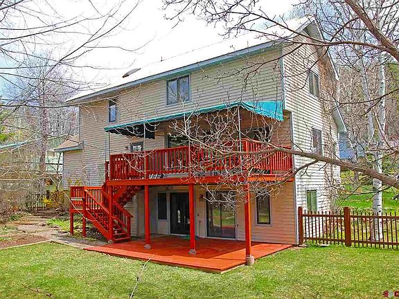 Location, location, location!! This wonderful home is conveniently located across the street from the Birket Trailhead to Animas Mountain and in one of the quieter neighborhoods in town. This home is in immaculate condition with new carpet and paint and has been impeccably maintained. There is a wonderful sunny living room upon entry with vaulted ceilings and two skylights. A formal dining room with a pass through to the kitchen and french doors out to a large deck with awning. There is a powder room, and laundry conveniently located just off the oversized two car garage. Upstairs is the large master suite with vaulted ceilings, a walk-in closet and a 3/4 bath with double vanity. There is also an extra storage room inside the master walk-in closet. Two more bedrooms are conveniently located on this level, both with walk-in closets and a shared full bath. There is a large built in bookcase looking over the open living room. The lower includes the fourth bedroom with it's own half bath and a door to the back yard. There is a large unfinished room on the lower level that the current owner is using as a workshop. This space is roughly 480 square feet and is drywalled, heated and also has a sliding glass door to the backyard. A new owner could finish off the space with carpet and paint and have a large den or office space. The seller recently installed a new high-efficiency boiler for the hot water baseboard heat. The large back yard is fenced and has plenty of mature gardens and trees with peek a boo views of the La Plata's off the deck. Don't miss out on this opportunity to own this wonderfully maintained home on a quiet in town street.