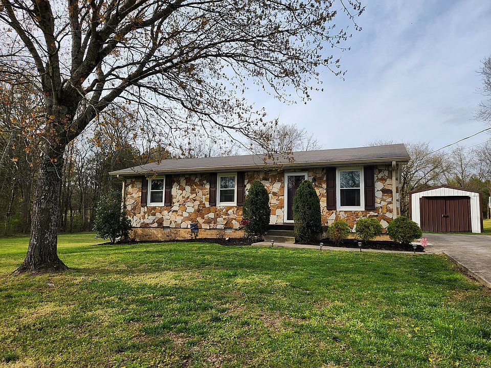 Privacy anyone? Beautiful one level home located on over an acre! Open Floorplan. Newer carpet, laminate flooring and fixtures. Newer kitchen countertops and appliances. Nice concrete patio to enjoy the backyard. Large trees. Backs up to woods. Large Concrete pad for extra parking. Storage Barn. Very convenient to I-840.
