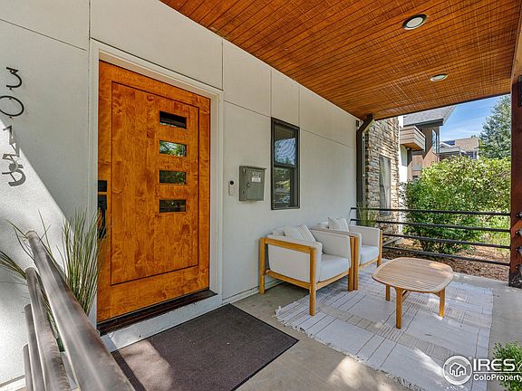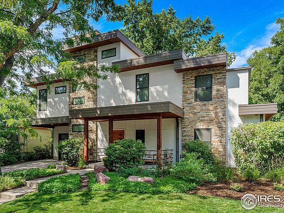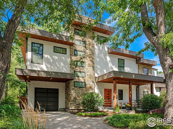 This warm-modern home sits in an idyllic North Boulder neighborhood, just down the block from the Community Gardens and rec center! Custom built in 2008 with only one owner, the house was designed and built in order to preserve a spacious, shaded and private backyard-part of 6100 square feet of outdoor open space, which is larger than some entire lots in Newlands. You could not build this house on this lot today. Architectural steel staircase by local artist JP Boylan is the dramatic spine of this well-designed home. Spectacular views of the Flatirons from the roof deck! 10' ceilings in basement that doesn't feel below grade due to the specially insulated foundation. Freshly painted with new wide plank wood flooring throughout. Chef's kitchen with generously sized white quartz waterfall island, espresso stained Plato bamboo cabinets, Sub-Zero fridge, dbl oven, gas range, wine fridge. Radiant heat throughout. SIP construction, EV charger, many green features, see docs for list. 4 kW PV and thermal solar panels are owned. Two one car garages: one drive through attached and one detached. Serene water feature in backyard. Just a few blocks to the Ideal Market Community Plaza, restaurants and shops.