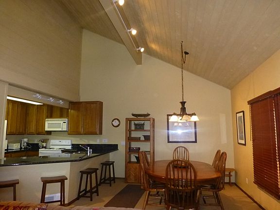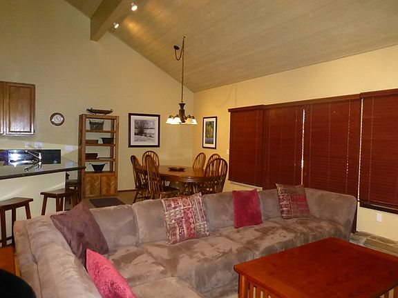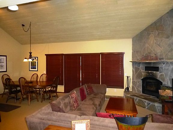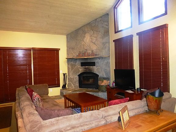 Remodeled townhome, includes paint, carpet, fireplace in living room is compliant, gas fireplace in master bedroom. Rock work in living area is floor to ceiling for dramatic look. Loft has been enclosed and is more like a 4th bedroom, with added bunk area, great for sleeping extra people. Tile entry floor, and tile in baths. Wood has been painted and makes units much brighter. Granite counter in kitchen and master. Track lighting throughout. Updated kitchen appliances. Flat screen TV's in living, master, and loft bedroom. Sliders from living area, downstairs bedrooms and master bedroom to enjoy outdoor living. Mini master located on first floor with direct access to bath. Located across from the Sierra Star golf course, and shuttle route to Eagle Lodge. Wooden blinds and drapes throughout. Furniture is in great shape and included in purchase list shall be provided. Private ample 2-car garage with direct access to first level. Full size washer/dryer included.