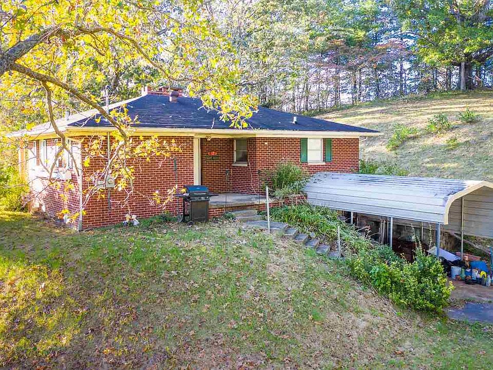 Looking for a 3-bedroom, 2 1/2-bath brick home sitting on over 13 acres tucked away into the trees of Boyd County? This home and location could be just what you have been searching for! Walk up the stairs and into the kitchen that provides plenty of storage in the wood cabinets and also connects to the adjacent dining room. The living room features a fireplace and access to a covered porch. You can also enjoy sipping your coffee in the mornings on the 27x9.5 screened-in porch that can be accessed from both the main floor living room and the primary suite, which features built-in storage as well as a small attached full bathroom. This home has 2 additional bedrooms on the main floor, which share the main floor full bathroom. In the basement you will find the laundry room, an additional area that was used as a beauty shop but could be easily repurposed, a carpeted room that could be used as a secondary living room, game room or craft space, a small half bathroom, as well as two large cinder block rooms that would be great for storage, a work-out room, or plenty of other possible uses to make it fit your needs. This home also features a built-in garage that is attached to the basement area as well as a carport in front of the garage. The cleared land could be used to add on another garage or workshop, plant a garden, or the wooded areas could possibly be cleared for additional home sites if desired. The property map with boundaries is on file. Conveniently located close to Boyd County schools and not very far at all from the new Camp Landing Entertainment District. This home is being sold as-is, but with some TLC and updates, someone could make this home theirs to enjoy for many years!