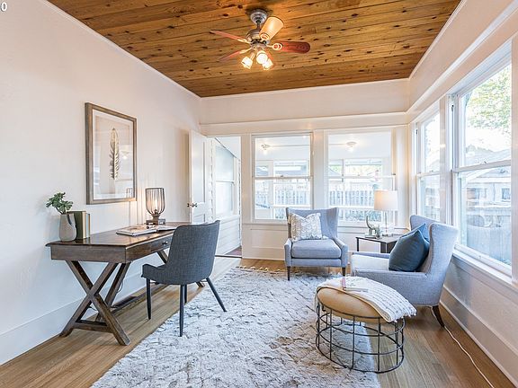 This rambling Rose City Park Craftsman is full of generously sized rooms and flexible spaces. Expansive LR & DR w/a FP for cozy fall nights. French doors lead to the perfect spot for a family room or office, w/an adjoining sun porch (your plants will thank you!). Farmhouse kitchen. A primary suite sanctuary w/walk-in shower, soak tub & walk-in closet. ADU options abound, including an outside studio ready to become whatever you dream up. Green space to indulge all your urban gardening dreams. [Home Energy Score = 5. HES Report at https://rpt.greenbuildingregistry.com/hes/OR10187046.pdf]